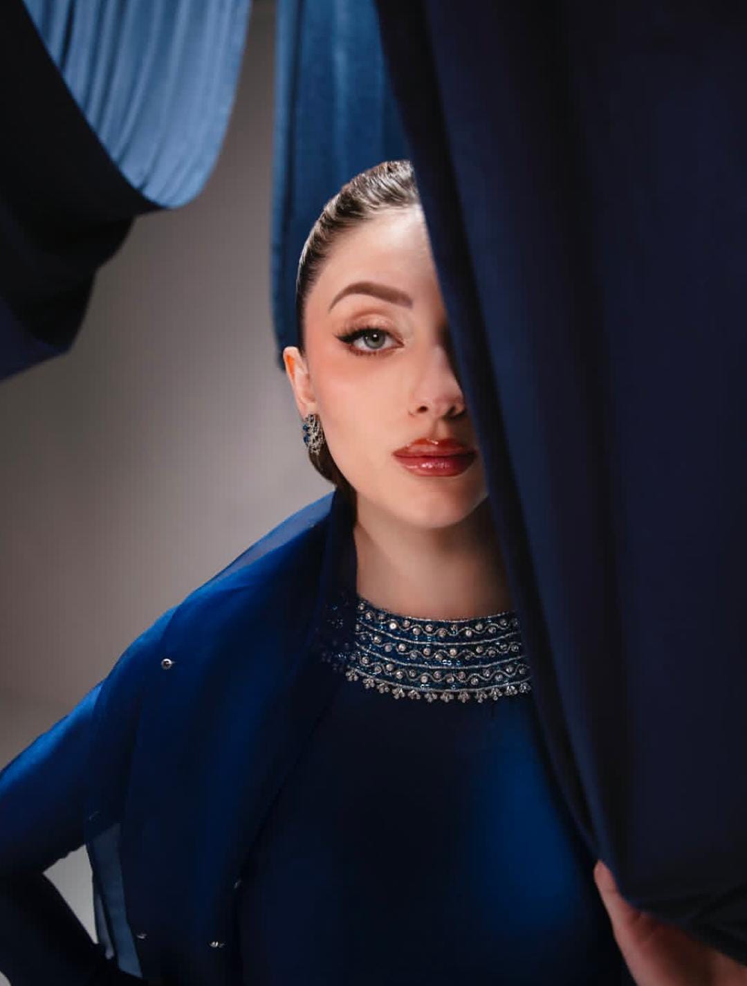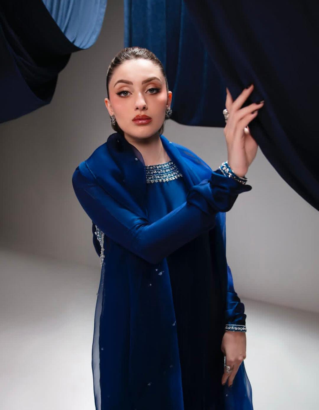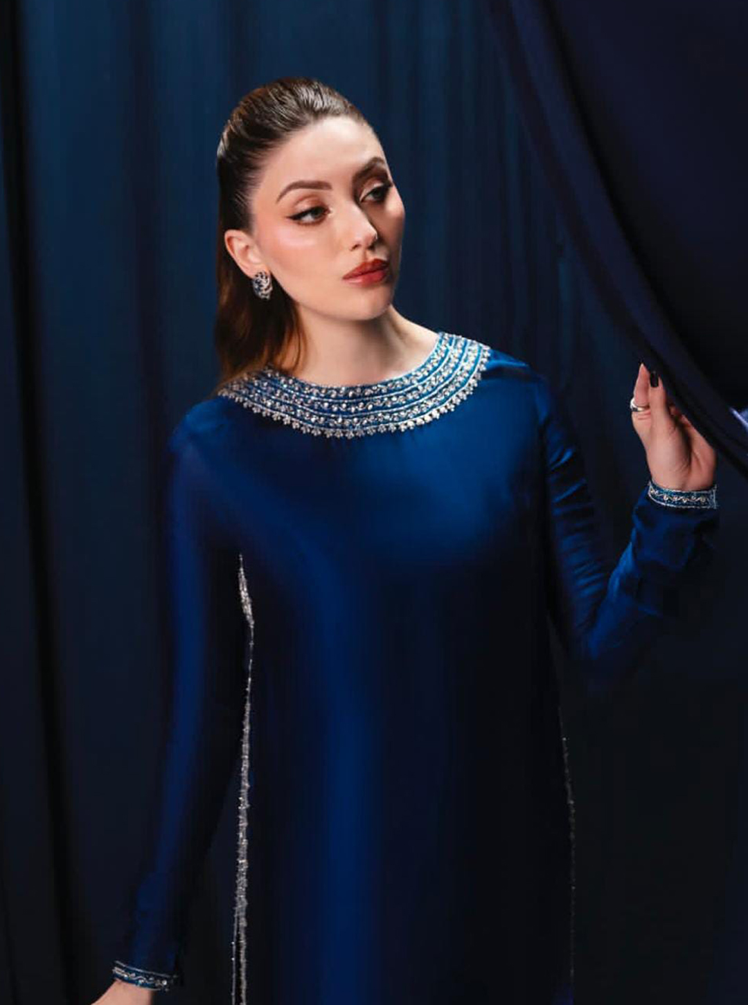 Artistry: Features exquisite silver hand-embellishments (stone work) that sparkle against the deep blue base.