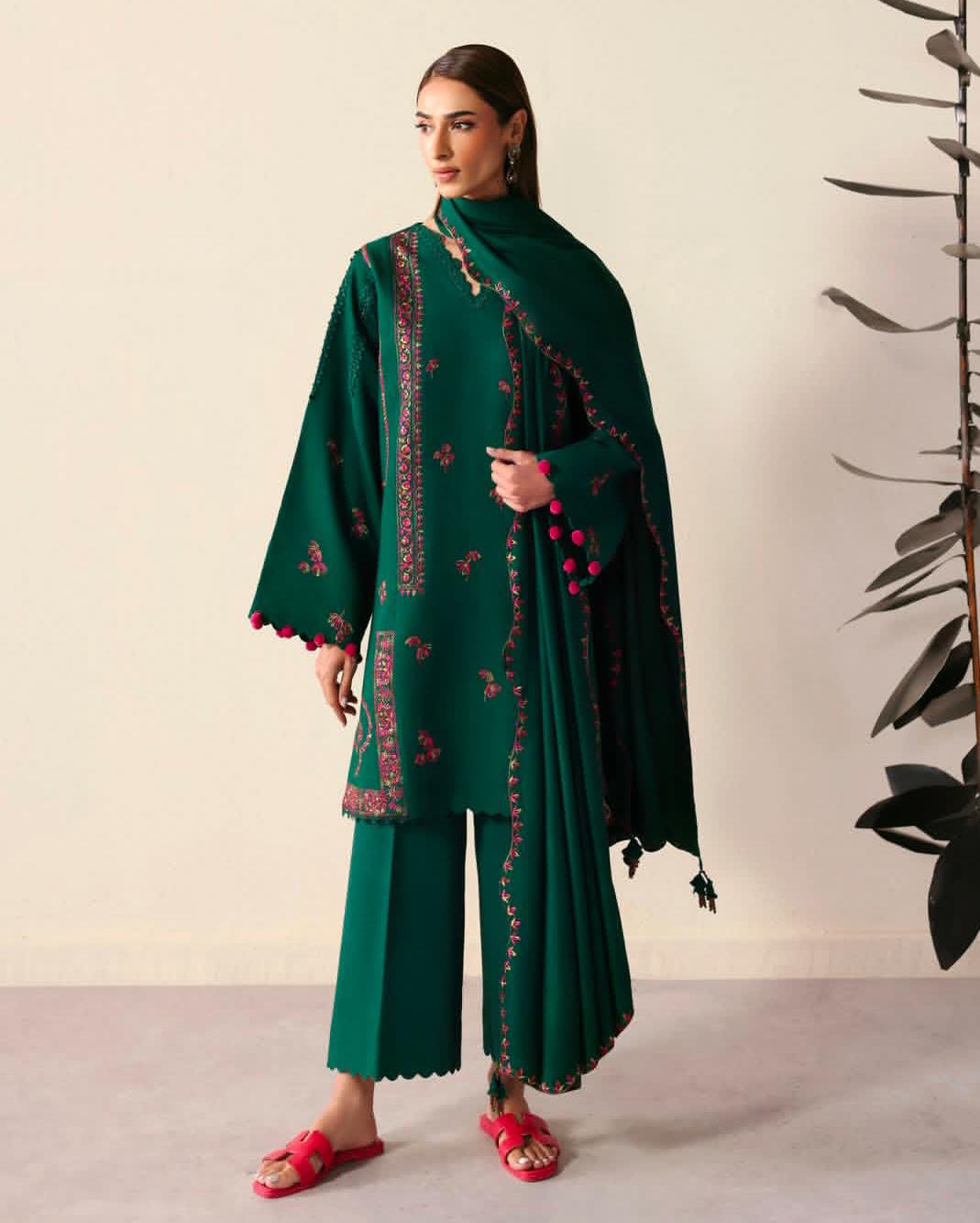 Embrace the season in style with our “Zariyan” tunic from the Dilkash Semi-Formal range. Made from high-quality, durable Khaddar, this piece is designed to keep you warm while ensuring you look effortlessly polished.